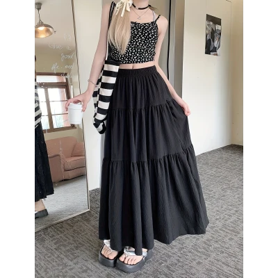 Spring and Autumn Women's High Waist Slim Versatile White Midi Skirt, Elastic Waist, Mid Length Black Lined Skirt, Beach Party Long Skirt.