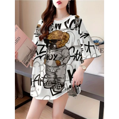 Women's Plus Size Casual T-Shirt with Character Print - Loose Fit, Short Sleeve, Round Neck,